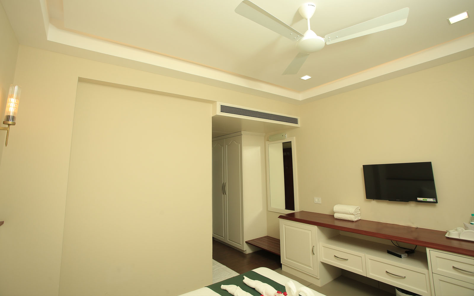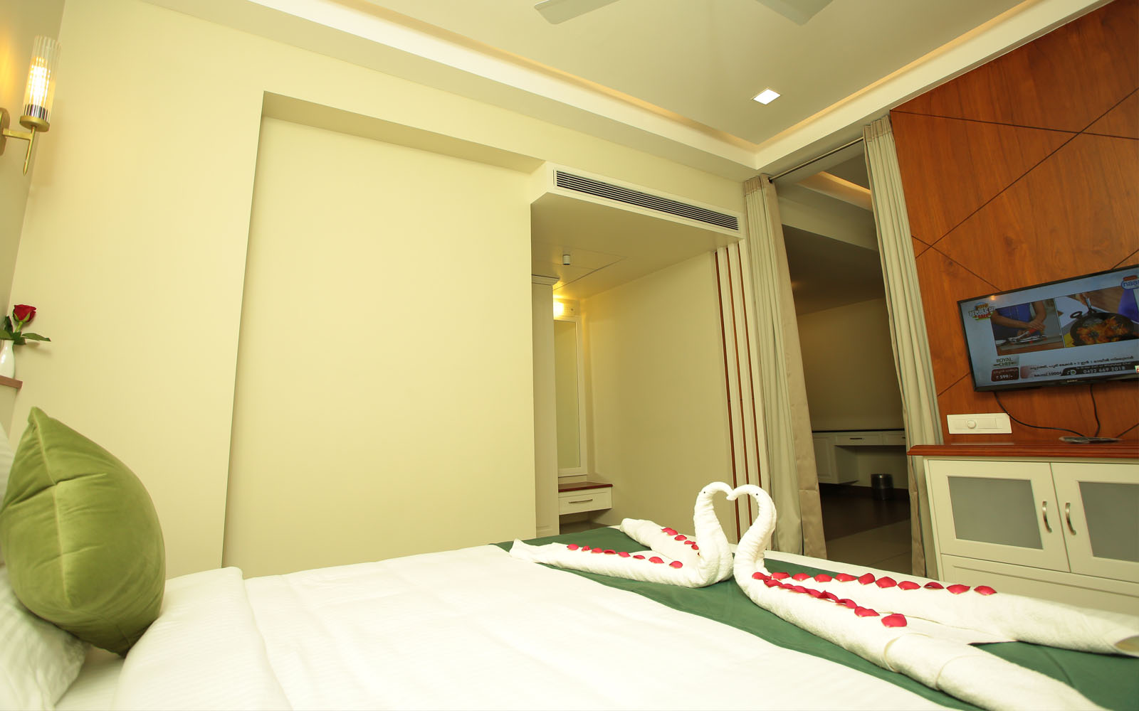 Our Suite rooms allow guests to experience sheer luxury. We give are a blend of perfect ambience and comfort with utmost cleanliness. Relax away in our superior category room with a king bed, large living area, walk-in wardrobe and a private balcony. The rooms are designed to be spacious with a living room, dining room, and a private balcony. Complimentary Wi-fi available in the room.